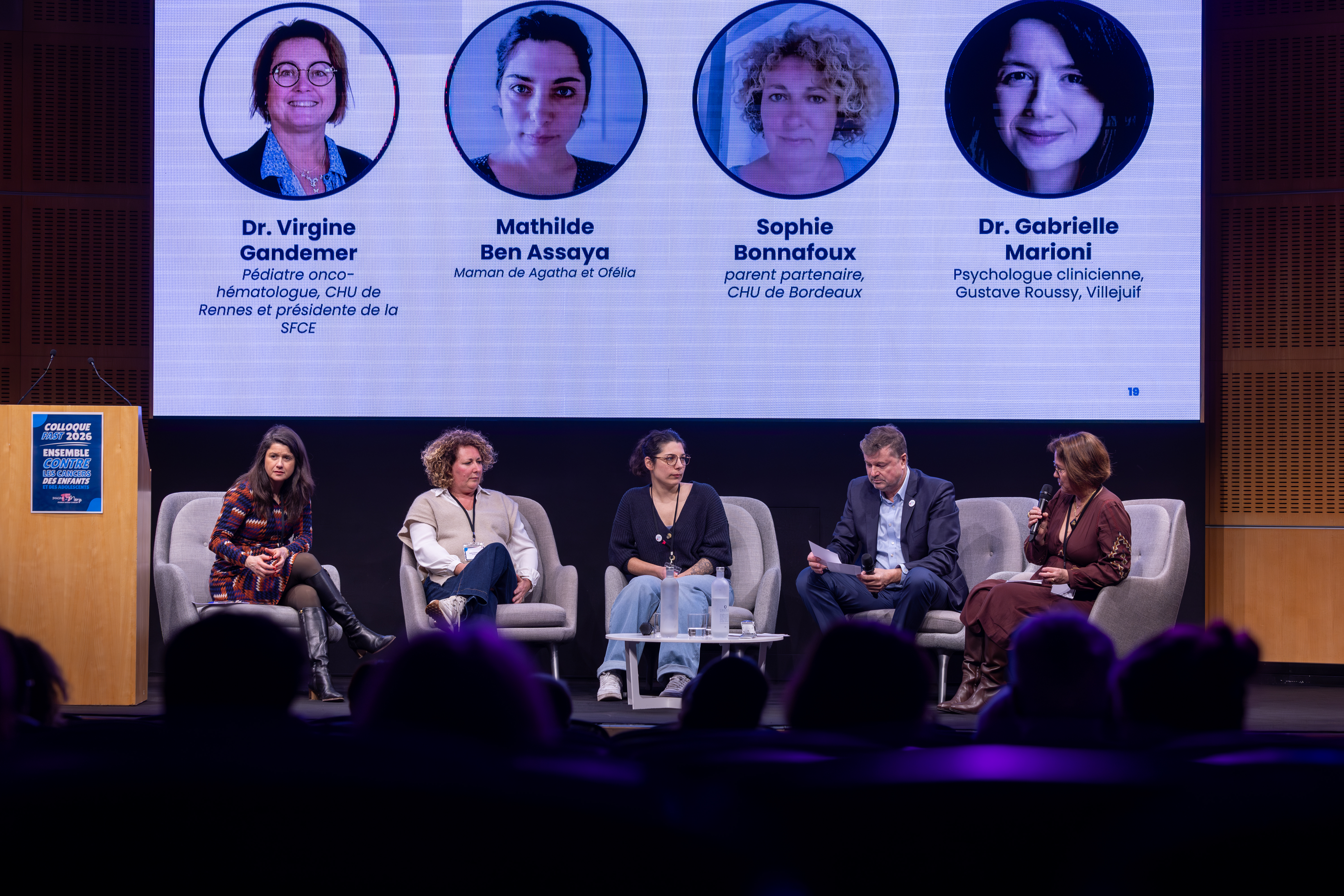 colloque FAST 2026 par Imagine for Margo pour lutter contre les cancers pédiatriquesLa seconde table ronde de la journée a réuni Dr Virginie Gandemer, Mathilde Ben Assaya (maman ayant participé à un séjour Dana Escape), Sophie Bonnafoux (patient partenaire au CHU de Bordeaux) et Dr. Gabrielle Marioni (psychologue clinicienne, Gustave Roussy). Ensemble, ils ont fait l’état des lieux importants des besoins des familles, que les associations font leur possible pour faire en sorte qu’elles ne restent pas seule dans l’épreuve de la maladie. En effet, le cancer précipite les parents dans une crise émotionnelle aiguë, marquée par l’angoisse, la culpabilité, la peur de l’avenir et, parfois, une remise en question de leur rôle protecteur. Ils doivent réorganiser leur vie quotidienne, concilier soins, responsabilités familiales et contraintes professionnelles, souvent sans soutien institutionnel adapté, ce qui augmente leur fatigue, leur stress et leur sentiment d’isolement. Le besoin d’une communication claire, progressive et adaptée avec les soignants est essentiel pour aider les parents à mieux comprendre la situation médicale et à s’impliquer sereinement dans le parcours de soins de leur enfant. Parallèlement, la fratrie vit également une expérience intense et souvent négligée. Les frères et sœurs peuvent se sentir isolés, invisibles ou moins importants, du fait de l’attention massive portée à l’enfant malade. Ils vivent fréquemment des ruptures dans leurs routines, une perte de repères et un manque de soutien émotionnel, ce qui peut entraîner de la peur ou de la tristesse.