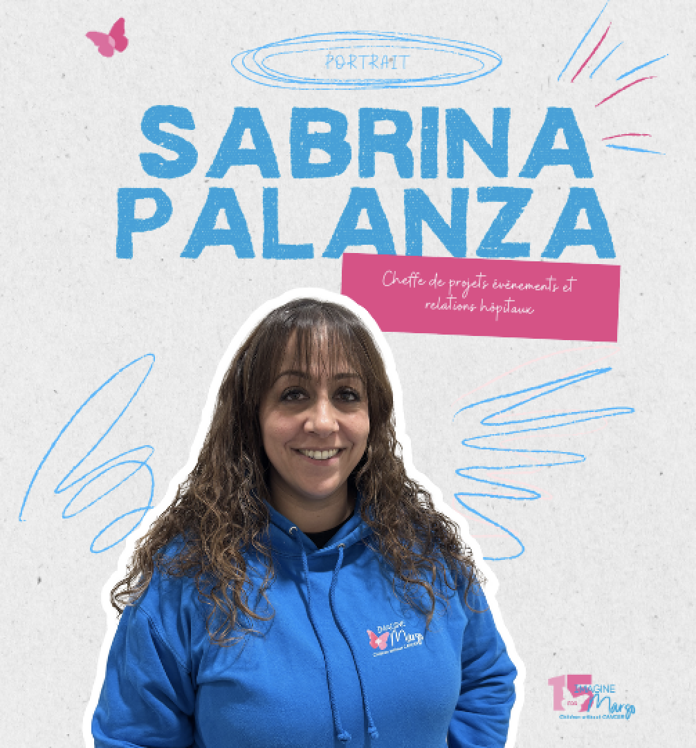 Portraits de l'équipe Imagine for Margo. Découvrez-en plus sur Sabrina Palanza, cheffe de projets évènements et relations hôpitauxArrivée en mars 2014, Sabrina est la première collaboratrice d’Imagine for Margo. Elle a vu l’association grandir, évoluer et se structurer. Son rôle, au fil des années, s’est affiné, mais son engagement, lui, est resté intact. Organisatrice de la course Enfants sans Cancer jusqu’en 2019, gestion des partenariats, assistante polyvalente, Sabrina a assuré de multiples missions et est un vrai couteau suisse. Dotée d’une agilité dans les différents postes qu’elle a occupés, elle dispose d’un atout indispensable dans une association.